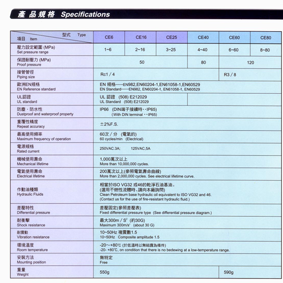产品简介: 压力开关 3AMP 250VAC/24VDC 2-16MPA