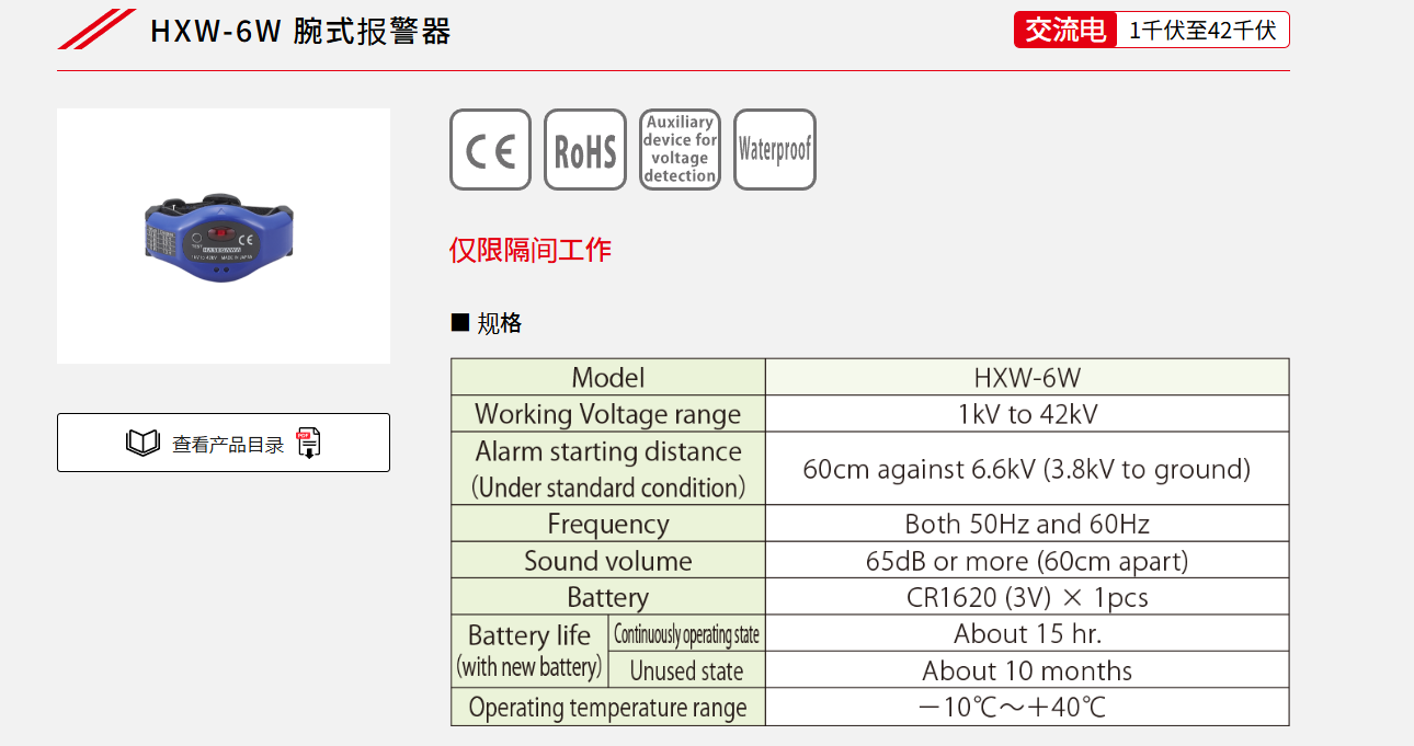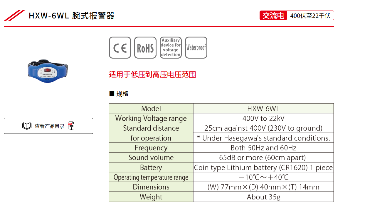 产品简介: 日本HASEGAWA长谷川HXW-6WL/HXW-6W腕式报警器高压电压原装进口